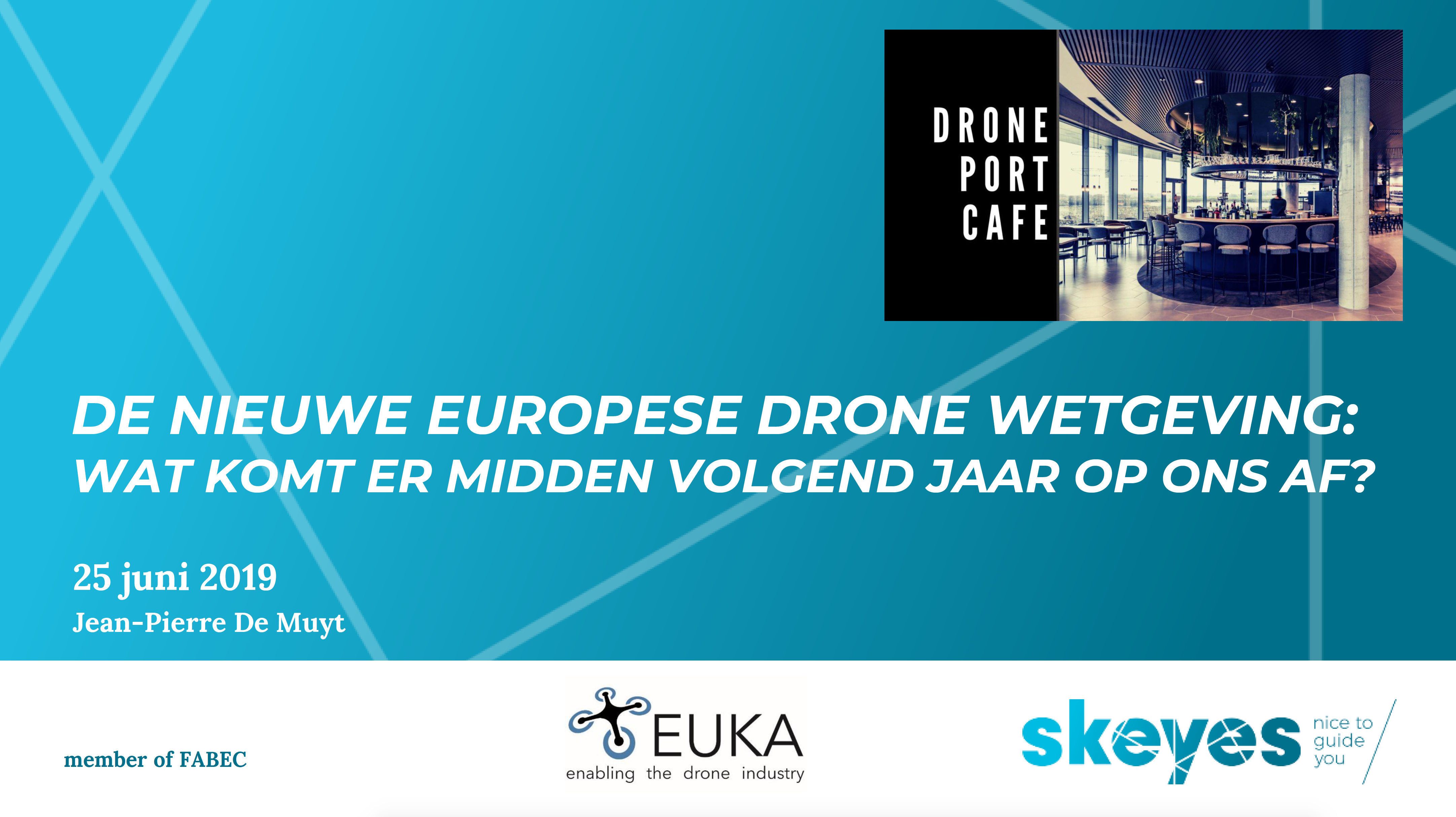Op 11 juni 2019 werd de Europese regelgeving voor drones in definitieve vorm gepubliceerd. Jean-Pierre De Muyt (foto), Senior Business Development Expert Unmanned Traffic bij skeyes, was actief betrokken bij de totstandkoming van deze wetgeving en kwam het resultaat toelichten aan een 70-tal piloten en andere geïnteresseerden tijdens het DronePort Café op 25 juni in Sint-Truiden. Wat mogen we nu verwachten van die nieuwe wetgeving?